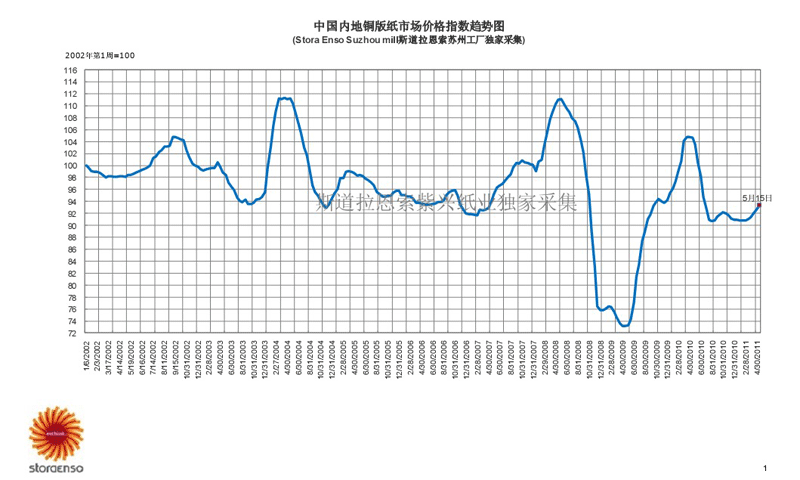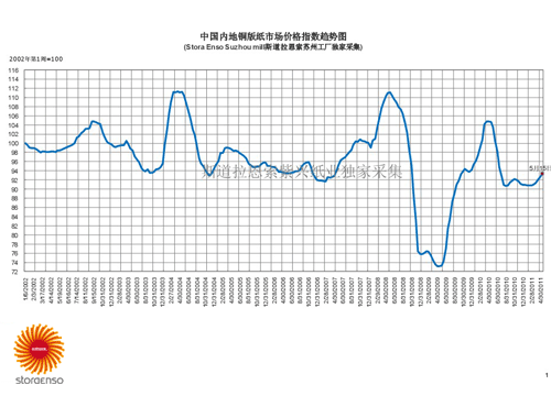 國內銅版紙市場價格指數趨勢圖
