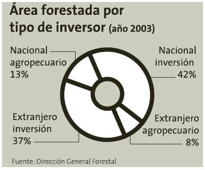 到目前為止,在烏拉圭的林業(yè)投資中,國(guó)有資本占55%,其中商業(yè)用林投資占42%,牧農(nóng)用林占13%;外國(guó)資本占4513%,其中商業(yè)用林投資占37%,牧農(nóng)用林占8%。