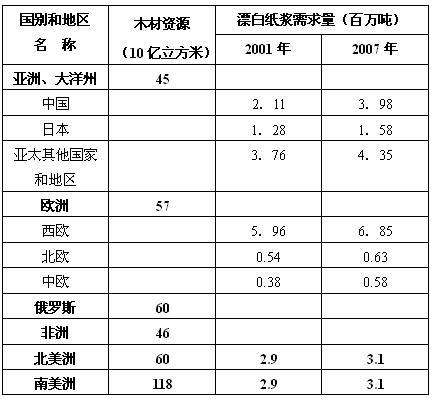 附:世界木材資源量和漂白紙漿需求量一覽表