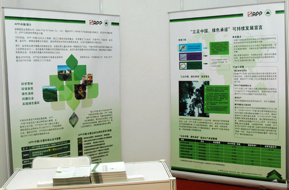 APP(中國)作為國內(nèi)領(lǐng)先的綠色造紙企業(yè),參加了為期三天的建設(shè)環(huán)境友好型社會(huì)成果展覽會(huì)及相關(guān)論壇。借助這次高端展會(huì)平臺(tái),APP(中國)展示了公司簡介、“立足中國 綠色承諾”可持續(xù)發(fā)展宣言與行動(dòng)、節(jié)能減排理念與成果、企業(yè)社會(huì)責(zé)任實(shí)踐、獎(jiǎng)項(xiàng)與榮譽(yù)等。