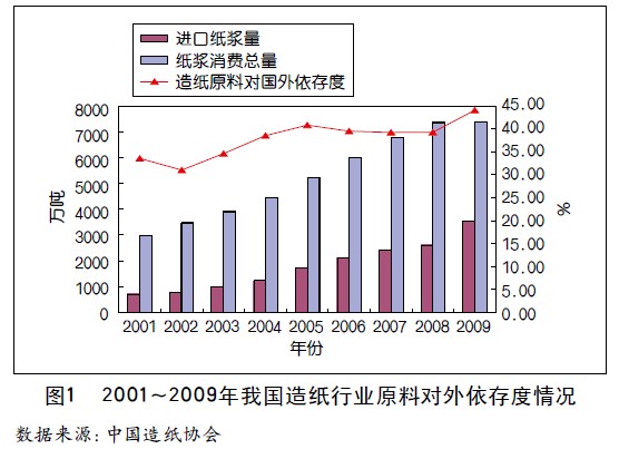 1.1我國造紙?jiān)蠈?duì)外依存度不斷提高