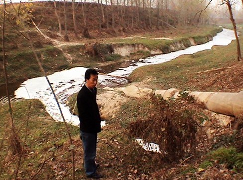 棕紅色造紙廢水使韋河閘下游變成了“紅河谷”最終流入淮河。