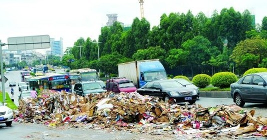 好在當(dāng)時貨車旁邊沒有其他車輛,否則倒下的一米多高的廢紙堆肯定會將車子埋住。倒下的廢紙將萬道路的兩條車道堵死,導(dǎo)致不少從汽車總站開出的班車受到影響。