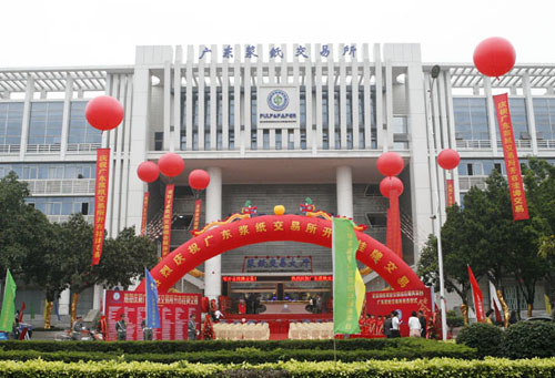 3月18日上午,全球首家漿紙交易綜合服務(wù)平臺(tái)“廣東漿紙交易所”開市儀式在廣州經(jīng)濟(jì)技術(shù)開發(fā)區(qū)廣東漿紙交易大廈隆重舉行,標(biāo)志著廣東漿紙交易所正式掛牌運(yùn)營(yíng)。廣州市人民政府黨組成員、原常務(wù)副市長(zhǎng)鄔毅敏、中國(guó)中小企業(yè)合作發(fā)展促進(jìn)中心主任黎志明、蘿崗區(qū)委副書記、區(qū)長(zhǎng)李紅衛(wèi)、廣州市金融辦公室副主任陳平、廣州市經(jīng)濟(jì)貿(mào)易委員會(huì)副主任林國(guó)強(qiáng)、中信銀行廣東分行行長(zhǎng)羅焱、光大銀行廣東分行行長(zhǎng)陳凱慧、興業(yè)銀行廣東分行行長(zhǎng)顧衛(wèi)平、平安銀行廣東分行行長(zhǎng)助理張武、中國(guó)造紙協(xié)會(huì)秘書長(zhǎng)趙偉以及廣州造紙集團(tuán)董事長(zhǎng)林昭遠(yuǎn)出席揭牌儀式,政府、協(xié)會(huì)、金融、物流企業(yè)等相關(guān)領(lǐng)導(dǎo)及紙業(yè)同仁共計(jì)300余人共同見證了這一行業(yè)歷史性一刻。