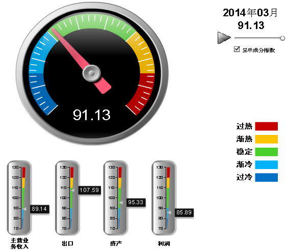 2013年3月,國內(nèi)制漿造紙行業(yè)經(jīng)濟運行指數(shù)為91.13,堪堪擺脫漸冷趨勢,進入穩(wěn)定發(fā)展態(tài)勢。其中,主營業(yè)務收入指數(shù)89.14;出口指數(shù)107.59;資產(chǎn)指數(shù)95.33;利潤指數(shù)85.89。由此可見,造紙業(yè)依然徘徊在低谷,行業(yè)形勢依然嚴峻。