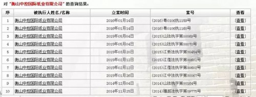 2016年1月14日,最高人民法院公布的“老賴”名單中,中控國際紙業赫然在列。根據初步統計,自2014年12月4日起到目前為止,中控國際紙業先后16次登上了“老賴”黑名單,累計欠款近4億元。
