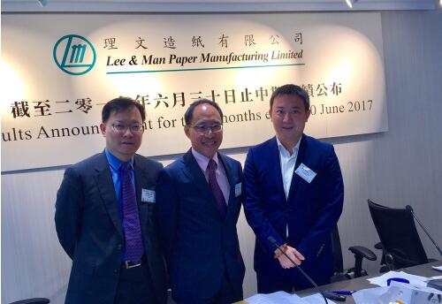 圖左起為理文造紙財務總監(jiān)張國強、主席李文俊及首席執(zhí)行官李文斌
