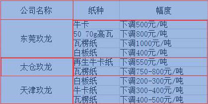 11月7日,一個玖龍降價的消息開始在朋友圈里瘋傳!有說降750元/噸的,也有說降1000元/噸的,到底什么情況?一時間市場大亂!據(jù)小編調(diào)查得知,玖龍確實(shí)降價了,總的下調(diào)幅度為200-1000元/噸! 近日,紙價行情多變,行業(yè)內(nèi)人心惶惶,11月7日突然爆出玖龍降價消息,這到底是真是假?華印傳媒秉持一貫負(fù)責(zé)、嚴(yán)謹(jǐn)?shù)膽B(tài)度,對真實(shí)情況做了詳盡調(diào)查。小編從玖龍方面了解到,玖龍的確降價了,降價企業(yè)包括天津玖龍、東莞玖龍、太倉玖龍,跌價紙種涉及玖龍的牛卡、瓦紙、再生牛卡紙、白板紙等。 以下是小編根據(jù)市場情況調(diào)查得知,僅供參考,具體情況請咨詢廠家: