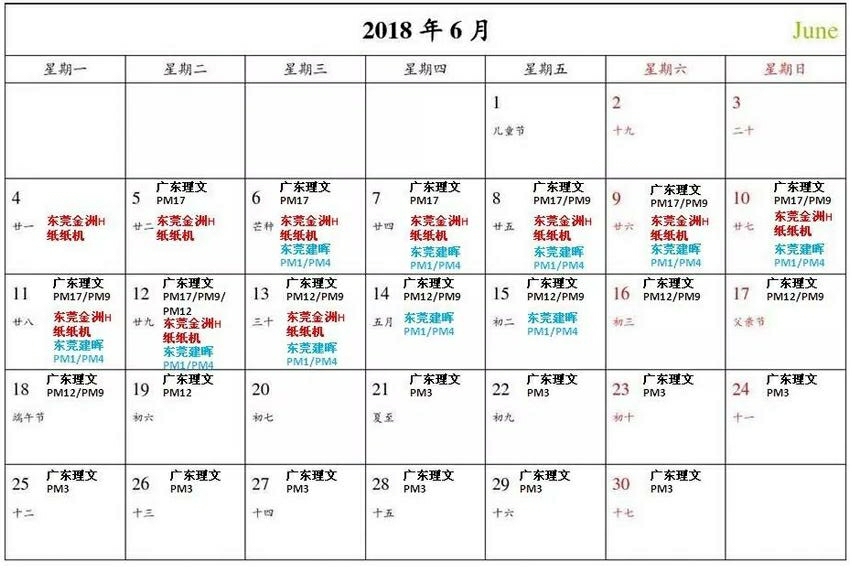 廣東3大紙業6月停機檢修日歷