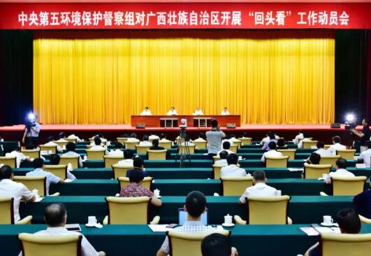 新一批中央環保督察全面啟動,不折不扣嚴查1個月 6月7日上午,中央第五環境保護督察組對廣西壯族自治區開展“回頭看”工作動員會在南寧召開。至此,第一批中央環保督察“回頭看”全部實現督察進駐,檢查為期一個月。