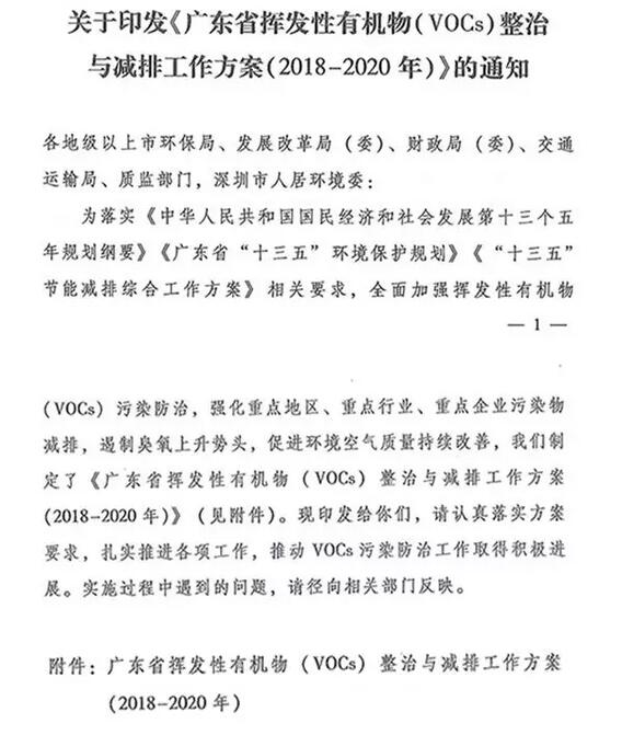 6月28日,廣東省印發了《廣東省揮發性有機物(VOCs)整治與減排工作方案(2018-2020年)》,將嚴格控制VOCs污染的排放,推動低(無)VOCs含量輔材的替代和工藝技術升級。抓好廣州、深圳、佛山、東莞、惠州等重點城市VOCs減排。其中跟化工和材料行業相關的規定如下: