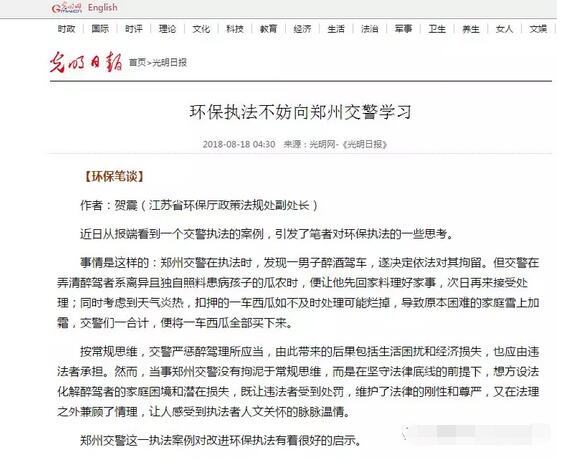 環保執法不妨向鄭州交警學習 【環保筆談】 作者:賀震(江蘇省環保廳政策法規處副處長) 近日從報端看到一個交警執法的案例,引發了筆者對環保執法的一些思考。 事情是這樣的:鄭州交警在執法時,發現一男子醉酒駕車,遂決定依法對其拘留。但交警在弄清醉駕者系離異且獨自照料患病孩子的瓜農時,便讓他先回家料理好家事,次日再來接受處理;同時考慮到天氣炎熱,扣押的一車西瓜如不及時處理可能爛掉,導致原本困難的家庭雪上加霜,交警們一合計,便將一車西瓜全部買下來。 按常規思維,交警嚴懲醉駕理所應當,由此帶來的后果包括生活困擾和經濟損失,也應由違法者承擔。然而,當事鄭州交警沒有拘泥于常規思維,而是在堅守法律底線的前提下,想方設法化解醉駕者的家庭困境和潛在損失,既讓違法者受到處罰,維護了法律的剛性和尊嚴,又在法理之外兼顧了情理,讓人感受到執法者人文關懷的脈脈溫情。 鄭州交警這一執法案例對改進環保執法有著很好的啟示。 近年來,某些地方在環保執法中簡單粗暴,違反法定程序執法的情形時有發生。比如,有的查封扣押農民的脫粒機,致使玉米霉變,使當事農民生計陷于困頓;有的強制要求在極短時間內把養殖場拆除干凈,而不顧一大群活豬活雞并非一兩天就能售賣處理掉的事實,使得養殖戶經濟嚴重受損;還有的對一些違法企業簡單地斷水斷電,不僅使半成品成為廢品,還留下生產安全隱患……這些不顧影響、不計后果的簡單化做法,容易引發群眾和企業的反彈,還會影響環保執法的權威性和有效性。 鄭州交警的執法故事告訴我們:執法是一門藝術,其中既有政策又有策略。環保執法也是如此。加強環境監管,不能只是簡單地貼封條查封、扣押,不能只是簡單地下一道行政命令限產、停產,不能只是簡單地報請政府停業、關閉,也不能簡單地移送公安機關行政拘留、追究刑事責任。筆者以為,鐵面執法、對環境違法行為嚴處重罰,與給企業一定的緩沖時間、幫助企業解決問題,是政府加強環境監管不可偏廢的兩個方面。即使一些企業必須關停取締,也要依法進行,留給企業處置其合法資產的時間,而不能粗暴地拆除廠房,將合法財產也同時掩埋在廢墟中。 行政處罰固然是行政執法的重要手段,但行政執法絕不止于此,執法者與執法對象也絕非完全對立的雙方。企業是社會財富的主要創造者,服務企業是政府應有之責。在環境監管中,企業既是監管對象,也是服務對象——而且許多時候服務往往是更有效的監管。企業的某些環境違法行為完全可以通過政府的有效服務得到改變或解決。只重視嚴罰環境違法,而不幫助企業分析環境違法的原因、得失和解決之道,并非現代意義上的文明執法,這樣的環保執法也很難得到群眾的擁護與企業的支持。 打贏污染防治攻堅戰,絕不只是對環保違法企業罰款、查封、關停就可簡單了事,更不是要大面積消滅產生污染物的實體企業。為此,環保執法者要常懷公仆之心、恪守為民服務的情懷,讓環保法既有“力度”又有“溫度”。要在堅持鐵面執法的同時,摸清企業的環保需求,并圍繞這些需求提供精準化、可操作的幫辦服務,以推動其合法生產、達標排放,實現綠色發展、環境友好。只有這樣,環保執法的過程才能既是查處環境違法的過程,也是宣傳環保法律法規與政策標準的過程;既是幫助企業解決環境問題的過程,更是服務企業綠色發展的過程。 《光明日報》(2018年08月18日09版)