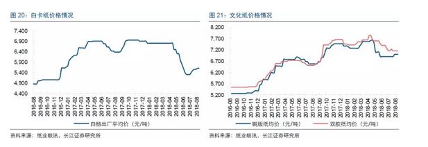 下半年包裝紙高位震蕩,龍頭包裝廠落實提價傳導壓力! 整體來看,造紙行業基本面并沒有發生明顯改變,旺季到來推動下游有所復蘇——開學季、博覽會、中秋節等臨近推動下游需求回暖,尤其是文化紙龍頭(太陽、晨鳴等)陸續外發漲價函,后續提價預期強烈。方正證券維持對下半年紙價以文化紙略有提價、包裝紙高位震蕩的判斷,而龍頭依靠而龍頭依托成本優勢保持著良好的噸紙盈利水平,疊加產能逐步投放貢獻業績增量,擁有良好的成長確定性。 對于包裝企業來說,從國家實施的藍天保衛戰、環保大督查、三年行動計劃、取締大量廢品回收站以及即將頒布的最嚴《固廢法》等一系列舉措來看,環保趨嚴已成常態,而未來最嚴《固廢法》的頒布將進一步加大包裝印刷企業的違法成本,推動行業經營走向規范化,促進行業集中度提升的同時,為龍頭發展帶來機遇。 從基本面角度看,包裝印刷業訂單向技術、規模優勢明顯的龍頭集中,趨勢向好,尤其是下游客戶分散的包裝龍頭,訂單數量大幅增加,“量價齊升”推動業績高增長。疊加現階段原材料價格環比高位持平,預計下半年紙價仍以平穩為主,龍頭正逐步落實提價傳導成本壓力,毛利率預計后續將有所改善。