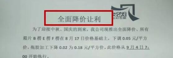 9月第一張降價(jià)函,紙板廠全面降價(jià)讓利 8月,市場(chǎng)逐漸進(jìn)入下半年旺季。月初上游包裝紙廠喊漲情緒高漲,但受廢紙價(jià)格影響,成品紙價(jià)格明穩(wěn)暗跌;8月中旬包裝用紙下游需求略顯好轉(zhuǎn),出現(xiàn)一波小漲,但仍未形成氣候。按照往年慣例,8月末9月初紙廠拉漲情緒必會(huì)高漲。但今年已不同往年,即便到了9月初,瓦楞箱板紙需求仍未見(jiàn)明顯好轉(zhuǎn),紙廠庫(kù)存壓力偏大,無(wú)奈需求寡淡價(jià)格難見(jiàn)起色。 在需求縮減的經(jīng)濟(jì)大環(huán)境下,下游紙板廠也只能有苦自己扛——降價(jià)!降價(jià)!降價(jià)!你沒(méi)有聽(tīng)錯(cuò),9月3日浙江臺(tái)州松彩包裝股份有限公司就發(fā)出降價(jià)函,宣布從9月4日7:00開(kāi)始,所有箱片B楞E楞F楞在8月17日價(jià)格基礎(chǔ)上下調(diào)0.05元/平方價(jià),拖膠加工下降0.02為0.18元/平方價(jià)。 而在8月24日浙江省溫州東睦紙品有限公司也曾宣布降價(jià):稱(chēng)因原紙價(jià)格有所回落,中瓦單面每平方下調(diào)0.10元,細(xì)瓦單面每平方下調(diào)0.13元,微瓦單面每平方下調(diào)0.13元,開(kāi)面紙每平方下調(diào)0.06元。 旺季紙板為何不漲反跌?今年瓦楞紙價(jià)格異常波動(dòng)影響 旺季紙板價(jià)格為何反常下跌?主要是受瓦楞紙價(jià)格今年異常波動(dòng)所致。卓創(chuàng)資訊分析:2018年以來(lái),國(guó)內(nèi)瓦楞紙市場(chǎng)呈現(xiàn)先漲后震蕩下行走勢(shì),紙價(jià)在5月份達(dá)到了1-8月份的價(jià)格最高點(diǎn),然自5月份以后瓦楞紙價(jià)格卻受下游訂單萎縮等因素影響進(jìn)入下滑通道,直至8月底9月初市場(chǎng)無(wú)明顯好轉(zhuǎn),上下游略顯僵持。據(jù)卓創(chuàng)資訊統(tǒng)計(jì)數(shù)據(jù)顯示,8月份瓦楞紙均價(jià)4571元/噸,環(huán)比下滑3.91%,同比上漲7.49%。另外較1月份月均價(jià)3907元/噸小幅上漲17.00%,較5月份價(jià)格最高點(diǎn)4936元/噸下滑7.39%。 價(jià)格變動(dòng)原因分析 1、外廢政策趨嚴(yán); 國(guó)廢貨緊價(jià)高致使紙企成本壓力增加。5月2日國(guó)家海關(guān)總署發(fā)布特急文件《海關(guān)總署關(guān)于對(duì)進(jìn)口美國(guó)廢物原料實(shí)施風(fēng)險(xiǎn)預(yù)警監(jiān)管措施的通知》,該通知在瓦楞紙市場(chǎng)上引發(fā)巨大波瀾,僅僅上旬瓦楞紙價(jià)格上漲幅度超過(guò)1000元/噸,遠(yuǎn)遠(yuǎn)高于預(yù)期,但同時(shí)也提前透支了后期的部分訂單,從而導(dǎo)致后市陷入疲軟狀態(tài)。 截至目前,2018年進(jìn)口廢紙的總核定量在1432.88萬(wàn)噸,較上一年度下滑49%。其中大部分核定量掌握在規(guī)模紙企手中,憑借原料成本優(yōu)勢(shì)規(guī)模紙企個(gè)別基地紙價(jià)調(diào)至低于周邊中小紙企的水平。8月23日中午12點(diǎn)01分起,中國(guó)對(duì)美廢加征25%的關(guān)稅,利于國(guó)廢價(jià)格上漲,對(duì)瓦楞紙價(jià)格形成利好成本支撐,但受需求偏弱影響高成本不能順暢的傳導(dǎo)至下游,成本支撐演變?yōu)榧埰蟮某杀緣毫Α?/p> 2、國(guó)內(nèi)出口商品減少,間接影響瓦楞紙需求量; 今年國(guó)內(nèi)出口貿(mào)易出現(xiàn)萎縮,主要做出口訂單的包裝企業(yè)遭受重創(chuàng),訂單急劇下滑,因此生產(chǎn)線(xiàn)開(kāi)工亦難以保證。據(jù)卓創(chuàng)調(diào)研數(shù)據(jù)顯示,紙板廠的平均開(kāi)工率僅在60%左右,開(kāi)工不足現(xiàn)象十分常見(jiàn),這從而減少了瓦楞紙的需求量。 3、進(jìn)口原紙數(shù)量大增; 今年進(jìn)口原紙數(shù)量大幅增加,低價(jià)沖擊國(guó)內(nèi)貨源。據(jù)海關(guān)數(shù)據(jù)顯示,2018年1-7月份瓦楞紙進(jìn)口量達(dá)到了60.35萬(wàn)噸,較去年同期大幅上漲122.9%。進(jìn)口瓦楞紙憑借著物美價(jià)廉的優(yōu)勢(shì)大量涌入國(guó)內(nèi),這對(duì)國(guó)內(nèi)貨源產(chǎn)生較大沖擊,使原本有過(guò)高庫(kù)存壓力的紙企雪上加霜,另外也使不少紙企為爭(zhēng)取客戶(hù)資源大打價(jià)格戰(zhàn)。 4、下游采購(gòu)心態(tài)趨于理性。 由于經(jīng)歷了近兩年紙價(jià)的大漲大跌,下游在面臨上述情況時(shí)也會(huì)對(duì)后市作出相應(yīng)的分析和判斷,采購(gòu)時(shí)會(huì)根據(jù)自身情況進(jìn)行適當(dāng)進(jìn)貨,不再盲目地儲(chǔ)備大量的原紙庫(kù)存。這從而導(dǎo)致紙企庫(kù)存壓力難以向下轉(zhuǎn)移,供應(yīng)壓力居高不下的情況下紙價(jià)上漲動(dòng)力不足。 部分中小紙廠面臨淘汰,二級(jí)廠進(jìn)入行業(yè)整合期 1、行業(yè)集中度提升:原料廢紙整體供應(yīng)有收緊預(yù)期,價(jià)格大幅下滑可能性較小。而下游需求無(wú)好轉(zhuǎn)跡象,紙企停機(jī)停產(chǎn)壓力將增加,加之成本面壓力的雙重影響,部分中小企業(yè)將被淘汰出局,規(guī)模企業(yè)成本優(yōu)勢(shì)凸顯,行業(yè)集中度將持續(xù)提升。 2、二級(jí)廠進(jìn)入行業(yè)整合期:由于過(guò)去兩年包裝用紙行業(yè)景氣度提升,下游二級(jí)廠擴(kuò)張迅速新增產(chǎn)能不斷釋放,然進(jìn)入2018年以后市場(chǎng)需求出現(xiàn)萎縮,供需矛盾突出導(dǎo)致二級(jí)廠再次進(jìn)入行業(yè)整合期。 3、終端尋求低價(jià)替代品:目前瓦楞紙市場(chǎng)雖處疲軟運(yùn)行狀態(tài),但因原料成本高位,紙價(jià)短期