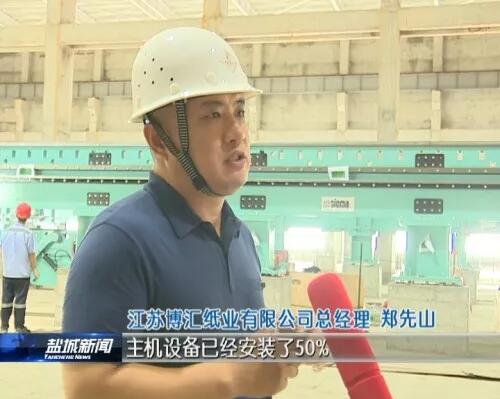江蘇博匯紙業(yè)有限公司總經(jīng)理鄭先山:主機(jī)設(shè)備已經(jīng)安裝了50%,預(yù)計(jì)10月份,主機(jī)設(shè)備安裝結(jié)束,11月份電器自動(dòng)化將安裝結(jié)束,12月份(進(jìn)行)整個(gè)的單機(jī)和聯(lián)動(dòng)調(diào)試。