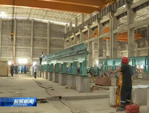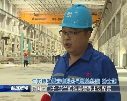 在江蘇鹽城大豐港經(jīng)濟(jì)開(kāi)發(fā)區(qū)江蘇博匯紙業(yè)有限公司二期項(xiàng)目現(xiàn)場(chǎng),記者看到工人們正在安裝從德國(guó)福伊特公司引進(jìn)的板紙機(jī),目前,該項(xiàng)目整個(gè)土建工作已經(jīng)基本結(jié)束,預(yù)計(jì)10月份主機(jī)設(shè)備安裝結(jié)束,12月份(進(jìn)行)整個(gè)的單機(jī)和聯(lián)動(dòng)調(diào)試。