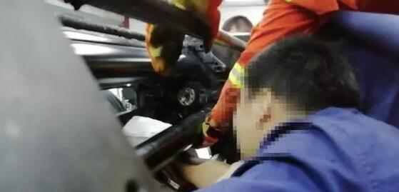 這名工人的右手和小臂整個被卷進了印刷機的滾輪,消防人員趕到現場時機器已經停止了運轉,為了不對被卡工人造成二次傷害,消防隊員先小心撬動機器的滾輪,試圖把手臂抽出。