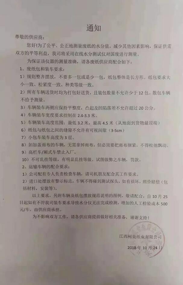 一、浙江嘉興景興紙業,國內廢紙收購相關要求。(可點擊圖片,放大🔍查看)