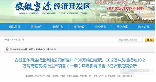 遷移外地:富陽市正華紙業(yè)在安徽設(shè)廠 1月8日,安徽省當(dāng)涂經(jīng)濟(jì)開發(fā)區(qū)公示了一份項目環(huán)境影響報告書征求意見稿:安徽正華再生紙業(yè)新建年產(chǎn)30萬噸白板紙、10.2萬噸灰板紙和10.2萬噸高強瓦楞紙生產(chǎn)項目(一期)已經(jīng)立項,開始環(huán)評。