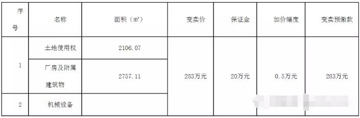 拍賣標的 土地使用權(quán)證號:休國用(2009)第0588號;產(chǎn)權(quán)證號為:房地權(quán)證休字第30114764號,房地權(quán)證休字第31112986號,房地權(quán)證休字第30111577號。 注:1、其中約370.34平米附屬建筑(配電房、廁所以及移動板房結(jié)構(gòu)的廠房)未辦理房產(chǎn)證。2、機械設(shè)備含韻翔牌雙色電腦水墨印刷開槽一體機組一臺、瑞杰平壓壓痕切線機一臺、四聯(lián)開槽切角機一臺、FGX瓦楞紙板分紙滾線機一臺、電動單梁(懸掛)起重機一臺。 變賣價:283萬元;變賣預繳款:283萬元(已包含保證金:20萬元),增價幅度:0.5萬元。 競買人條件 (一)競買人應(yīng)當具備完全民事行為能力,法律、行政法規(guī)和司法解釋對買受人資格或者條件有特殊規(guī)定的,競買人應(yīng)當具備規(guī)定的資格或者條件;因不符合條件參加競買的,競買人自行承擔相應(yīng)的法律責任。 (二)競買人須以本人名義在淘寶網(wǎng)上實名注冊;如參與競買人未開設(shè)淘寶賬戶,可委托代理人(具備完全民事行為能力的自然人)進行,但須在競買開始前向安徽省休寧縣人民法院辦理委托手續(xù);如參與競買人需聯(lián)名競買的,因淘寶網(wǎng)無法注冊聯(lián)名賬戶,聯(lián)名競買的競買人須共同到安徽省休寧縣人民法院辦理委托變賣手續(xù)(最遲于變賣開始前三個工作日辦理)。競買成功后,競買人(法定代表人、其他組織的負責人)須與委托代理人一同到安徽省休寧縣人民法院辦理交接手續(xù)。如委托手續(xù)不全,競買活動認定為委托代理人的個人行為。 競買人需要先報名繳納等同于標的物變賣價全款金額的變賣預繳款,才能取得變賣參與資格;至少一人報名且出價不低于變賣價,方可成交。 因不符合條件參加競買的,由競買人自行承擔相應(yīng)的法律責任。 (三)優(yōu)先購買權(quán)人參加競買的,應(yīng)于變賣開始前三個工作日向安徽省休寧縣人民法院提交有效證明,經(jīng)法院確認后才能以優(yōu)先購買權(quán)人身份參與競買;逾期不提交的,視為放棄對本標的物享有的優(yōu)先購買權(quán)。 咨詢、展示看樣的時間與方式 自2019年2月21日至2019年3月7日止(節(jié)假日休息)接受咨詢,2019年2月25日9時-11時統(tǒng)一安排看樣。有意者請與本院執(zhí)行局方法官聯(lián)系,電話17755913591。 本次變賣活動設(shè)置延時出價功能,在變賣活動結(jié)束前,每最后5分鐘如果有競買人出價,就自動延遲5分鐘。 變賣方式 1、網(wǎng)絡(luò)司法變賣期為60天,如有競買人在60天內(nèi)變賣期中的任一時間出價,則變賣自動進入到24小時競價倒計時;24小時競價周期內(nèi),其他變賣報名用戶可加價參與競買,競價結(jié)束前5分鐘內(nèi)如有人出價,則系統(tǒng)自動向后延時5分鐘(循環(huán)往復至最后5分鐘內(nèi)無人出價)。 2、競買人需要先報名繳納等同于標的物變賣價全款金額的變賣預繳款,才能取得變賣參與資格;至少一人報名且出價不低于變賣價,方可成交。