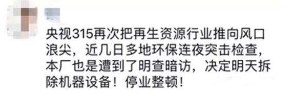 2019年7月31日前,按照關(guān)停取締、整合搬遷、升級(jí)改造方式全面完成全鄉(xiāng)“散亂污”工業(yè)企業(yè)(作坊)分類整治工作。 雖然通過(guò)“散亂污”工業(yè)企業(yè)(作坊)整治,可以倒逼企業(yè)發(fā)展轉(zhuǎn)型,促進(jìn)企業(yè)穩(wěn)定達(dá)標(biāo)排放,進(jìn)一步減少主要污染物排放總量,改善村莊生態(tài)環(huán)境質(zhì)量。 顯然,對(duì)于大多數(shù)地處農(nóng)村的廢品站及廢料回收加工企業(yè)來(lái)說(shuō),這次環(huán)保整治沖擊力度不可小覷! 在這里還是提醒各位老板未雨綢繆,提早動(dòng)手,盡可能按照環(huán)保要求來(lái)做,不然風(fēng)暴刮到,毀掉設(shè)備設(shè)施、蕩平廠房場(chǎng)地的事件將不可避免地再次上演……