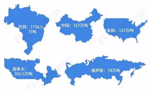 綜上,漂白闊葉漿、漂白針葉漿為主要紙漿產品,分析其全球布局有利于把握整個行業的全球發展現狀。 漂白闊葉漿的產能主要集中在巴西 根據全球林產品信息提供商(RISI)統計數據,2018年漂白闊葉漿的產能主要集中在巴西、中國、美國、加拿大、俄羅斯等地區;其中,巴西的漂闊漿產能最大,高達1756.5萬噸。 圖表3:2018年漂白闊葉漿的產能分布(單位:萬噸)