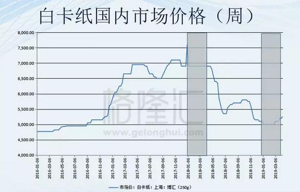 2018年晨鳴紙業(yè)機(jī)制紙、融資租賃、其他業(yè)務(wù)營收分別為243.04億元、22.02億元、23.71億元。占比分別為84%、8%、8%;機(jī)制紙、融資租賃、其他業(yè)務(wù)營業(yè)利潤分別為64.54億元、20.34億元、5.42億元,占比分別為71%、23%、6%。 1、紙價下跌 毫無疑問,機(jī)制紙業(yè)務(wù)是晨鳴紙業(yè)的紙業(yè),但是機(jī)制紙的價格在2018年以來是跌跌不休,這也是晨鳴紙業(yè)2019年第一季度凈利潤同比大幅度下降的主要原因。