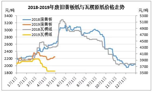 結合2018年廢黃板紙和瓦楞原紙的價格走勢看,在上半年兩者的走勢基本一致。但進入2019年后,兩者的走勢已出現了一定的背離,其背離主要有三個方面的特征: 1、瓦楞原紙跟漲廢黃板紙乏力,1月份到3月初的,廢黃板紙與瓦楞原紙整體呈上漲的格局。但是從價格走勢看,廢舊黃板紙的漲勢明顯要強于瓦楞原紙的漲勢。從年初到3月上旬,廢舊黃板紙價格上漲幅度在16.15%,瓦楞紙上漲幅度在3.74%; 2、下跌行情中,廢紙的抗跌性更強。3月中旬到4月上旬,廢黃板紙價格與瓦楞原紙出現了一波下跌的行情。但從兩者走勢看,廢紙更多的表現出了一定的抗跌性。從3月中旬到4月上旬,國廢黃板紙價格跌幅在8.07%,而瓦楞原紙價格跌幅9.54%; 3、廢黃板與瓦楞原紙的正相關性中斷。自4月中旬以來,國內廢舊黃板紙價格開始反彈上漲,但瓦楞原紙價格則呈橫盤整理,兩者走勢更加背離。 接下來成品紙和廢紙價格共振上漲?難以實現 對于2019年至今廢舊黃板紙與瓦楞原紙價格走勢出現背離,我們認為其主要因素還是來自供需結構的變化。由于國內經濟下行,且中國出口受阻,成品紙需求疲弱的格局愈發凸顯。紙廠原紙再度進入被動補庫存階段,對原紙價格形成很大的壓力。 不過從紙企的開工率看,受春節假期及行情擾動因素的影響,今年紙企的開工率出現了一定的下滑,但整體表現穩定。卓創統計數據顯示,今年1-4月份國內瓦楞紙產能開工率63%,較2018年1-4月開工率回落2個百分點。可以看出,當前紙企對廢紙還是存在剛性需求。 此外,對廢紙價格形成支撐的另外一個因素是外廢供應的減少。海關總署最新數據顯示,1-3月份國內廢舊箱板紙進口262.05萬噸,同比較少10.91%。 國內的廢紙價格與成品紙價格出現了一定的背離,這也是制約廢紙價格上漲的關鍵因素。從目前成品紙市場看,成品紙需求還是沒有明顯的好轉,紙企的成品紙去庫存壓力依然很大,將對廢紙價格形成較強的制約。要出現去年5月份成品紙和廢紙價格共振上漲的格局,今年可能會很難實現。 卓創造紙認為,今年國內的廢紙供需結構正在發生變化,影響價格波動的市場因素邊際減弱。從1-4月份的廢紙價格走勢看,其震蕩的幅度也在收窄。當然在外廢供應減少預期加強,成品紙需求惡化減弱的情況下,5月廢紙價格或能繼續走高。但成品紙去庫存壓力仍大,預計廢黃板紙價格上漲幅度或有限。