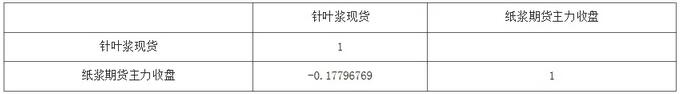 由表可見,2018年11月27以來,針葉漿現(xiàn)貨價(jià)格與紙漿期貨主力收盤價(jià)相關(guān)系數(shù)為-0.18,二者之間呈現(xiàn)較弱的負(fù)相關(guān)性。