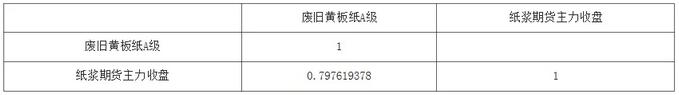 由表可見,2018年11月27以來,紙漿期貨主力收盤價(jià)與廢舊黃板紙A級現(xiàn)貨日均價(jià)相關(guān)系數(shù)為0.80,二者之間呈現(xiàn)較強(qiáng)的正相關(guān)性。