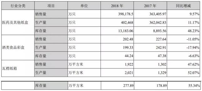 從業務板塊來看,報告期內紙制品業實現營業收入4.93億元,占總營收的88.79%;移動互聯網業務實現營業收入5942.43萬元,占總營收的10.70%。 醫藥及其他紙盒庫存量增長48.23%的主要原因為應客戶要求備貨。瓦楞紙箱業務銷售量增長47.62%、生產量增長52.07%, 庫存量增長55.34%,主要原因為報告期內銷售訂單增加所致。