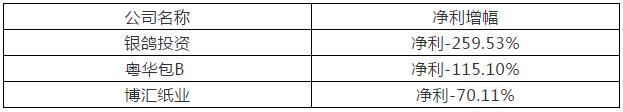 點評:凈利翻番是2018年上市紙企的搶眼表現,尤其是廣東甘化實現了從負增長到正增長。報告期內,市場競爭激烈,環保政策趨緊,產能過剩等問題日益突出,但他們緊跟市場變化,優化產品和銷售結構,應對市場挑戰,實現了公司整體經營業績提升。 降幅榜