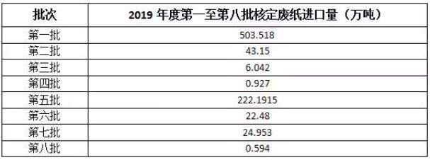 導語:6月11日,生態環境部固廢中心公布了2019年第8批廢紙限制進口許可名單。僅2家紙廠獲得廢紙進口許可,總量為5940噸。 根據生態環境部固廢中心發布的名單,共有3家造紙廠入列,其中東莞理文造紙廠屬于之前批次更改口岸。獲得外廢許可的僅兩家紙廠:一家是萊州魯通特種紙業有限公司獲得5250噸核定進口量,另一家廣東通力定造紙股份有限公司獲得690噸,兩家紙廠合計5940噸。 2019年廢紙進口量暴跌,下半年或將繼續萎縮