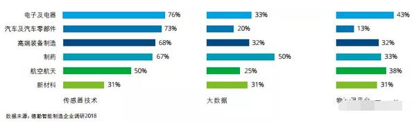 ▲ 受訪企業數據連通情況(按行業) 打通“次元壁” 未來數字世界和現實世界會是一體兩面,打通數據流也是數字孿生(digital twin)操作的基礎。德勤認為數字孿生是物理實體或流程的準實時數字化鏡像,有助于企業績效提升。數字孿生往往包含“數字產品孿生”、“生產工藝流程數字孿生”和“設備數字孿生”不同層面但可以高度集中統一的數據模型。 數字產品孿生領域,特斯拉公司為其生產和銷售的每一輛電動汽車都建立 數字孿生模型,相對應的模型數據都保存在公司數據庫。每輛電動車每天 報告其日常經驗,并通過數字孿生的模擬程序使用這些數據來發現可能的 異常情況并提供糾正措施。通過數字孿生模擬,特斯拉每天可獲得相當于 160萬英里的駕駛體驗,并在不斷的學習過程中反饋給每輛車。生產流程數 字孿生領域,一些嗅覺敏銳的工廠及生產線開始引入數字孿生,在建造之 前,對工廠進行仿真和模擬,虛擬出建造工廠的最佳流程,再將真實參數 傳給實際的工廠建設,有效減少誤差和風險。待廠房和生產線建成之后,日常的運行和維護通過數字孿生進行交互,能夠迅速找出問題所在,提高工作效率。 Gartner對美國、德國、中國與日本的202位企業的調查發現,到2020年,至少50%年收入超過50億美元的制造商將為其產品或資產啟動至少一項數字孿生項目,屆時參與使用數字孿生技術的企業數量將增長3倍。預計在今后數年時間,將有數以億計的用戶使用數字孿生操作,它將被企業用于規劃設備 服務、生產線操作、預測設備故障、提高操作效率、加速新產品開發等。在未來,這項技術有望與工業生產徹底融合,推動智能工業進入新階段。 如何創建數字孿生?德勤認為數字孿生的創建包含兩個主要關注領域:設計數字孿生的流程和產品生命周期的數據要求——從資產的設計到資產在真實世界中的現場使用和維護;創建使能技術,整合真實資產及其數字孿生,使傳感器數據與企業核心系統中的運營和交易信息實現實時流動。 智能工廠的落地實施還要看企業痛點,有的企業要提升產品質量,有的企業要實現產品設計生產和管理的數字化,由于企業往往難以承受“全家桶”解決方案,可以先解決眼前問題,但一定要有長遠規劃,以免以后無法實現互聯互通。 —— 朱毅明,和利時集團總工程師 深挖設備和用戶價值 制造型企業面臨愈發激烈的市場競爭和日益透明的產品定價,不得不尋找新的 價值來源。德勤智能制造調研結果顯示,設備和用戶價值深度挖掘是企業智能制造部署第二重點領域。62%的受訪 企業正積極部署設備和用戶價值深度挖掘,其中41%的企業側重設備價值挖掘,21%的企業側重用戶價值挖掘。 圍繞設備進行價值挖掘可以說是制造型企業的天性。如在研發設計階段,嵌入新技術,生產更智能或更多樣化的產品;在銷售階段,提供設備相關金融服務;在售后階段,對出廠設備和產品進行實時數據采集和監控,并進行性能分析、預測性維護等,既提升安全性,也為企業創造更多服務機會。 雖然起步較晚,制造型企業也在探索和嘗試對用戶價值進行深度挖掘,其中以C2M (customer-to-manufactory,客戶到制造)最受矚目。C2M體現了定制化生產的特性,使制造商直接面對用戶,以滿足用戶個性化需求;同時通過減少中間環節降低成本、提升效率。 例子:紅領集團通過打造C2M電商平臺、柔性供 應能力和大數據能力實現了大規模定制 化。顧客可以在其C2M電商平臺選擇款式、工藝、材料并下單。平臺快速收集顧客分散、個性化需求數據的同時,大數據和云計算技術按客戶需求匹配產品數據模型,其款式數據和工藝數據能滿足超過百萬萬億種設計組合,覆蓋99.9%的個 性化設計需求。當版型確定后,系統自動生成工藝數據,工藝數據發送至工廠,工廠進行生產交付。整個流程從下訂單到產 品出廠僅需7個工作日,并做到按需生產、零庫存、一人一版、一衣一款。 阿里巴巴的“淘工廠”集結上萬家工廠,將電商買家訂單與制造廠商產能進行對接,把柔性產能檔期聯網,解決電商買家有訂單無工廠,制造企業有產能無訂單的結癥。 工業物聯網的三類場景 智能制造要求制造系統具備感知、分析、決策和執行的能力,而這些能力的核心均涉及物聯網相關技術,如面向感知的物聯技術(傳感器、RFID、芯片)、面向分析的工業大數據分析和面向決策及服務的應用平臺。 德勤調研結果顯示,目前中國制造企業物聯網應用以感知為重點,分析和服務交融將是未來物聯網建設重點。受訪企業普遍建立系統以傳感器采集動態數據,但數據分析和平臺應用相對滯后。 從行業應用來看,電子及電器行業傳感器和平臺應用最為普及,76%的受訪企業利用傳感器采集數據,43%的企業利用物聯網平臺,但僅有33%的企業采用大數據技術分析所采集的數據。汽車及零部件制造行業傳感器技術應用也有較高普及率達73%,但大數據和平臺應用低于其他受訪行業。制藥行業大數據技術利用最為積極,因為醫藥行業早已面臨海量數據和非結構化數據挑戰(見下圖)。