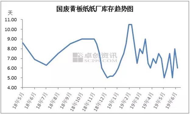 從監(jiān)測市場表現(xiàn)來看,廢紙消費量同比下降的主要原因是成品紙需求的減少,次要原因是成品紙和廢紙漿進口量的增長。而成品紙需求之所以減少,一是因為成品紙投機需求的退場,二是因為成品紙剛性需求的下降。 另一方面,紙廠廢紙庫存水平下降。2019年,即便是在外廢進口快速減量的背景下,紙廠常備廢紙庫存水平仍低于2018年。據(jù)卓創(chuàng)資訊監(jiān)測數(shù)據(jù)顯示,2019年3-5月,紙廠廢紙庫存水平同比下降20.93%至6.80天。