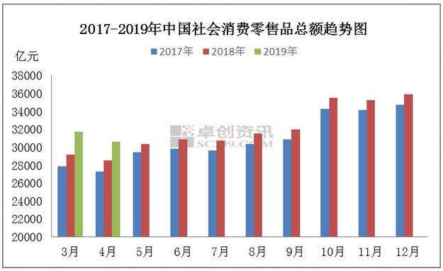 同時,國內(nèi)消費逐年穩(wěn)步增長,2019年1-4月,社會消費品零售總額累計增長8.0%,延續(xù)了長期以來的增長勢頭。