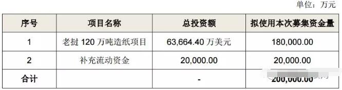 7月18日,太陽紙業披露定增募資預案:公司擬向包括控股股東太陽控股在內的不超過10名特定投資者,非公開發行不超5.18億股,擬募資總金額不超20億元。此次定增募資將主要用于老撾120萬噸造紙項目并補充流動資金。 值得一提的是,老撾120萬噸造紙項目實施后預計年增營收6.42億美元,年增利潤1.05億美元,稅前靜態投資回收期6.57年(包括建設2年)。本次募集的資金中,有18億元用于此項目。