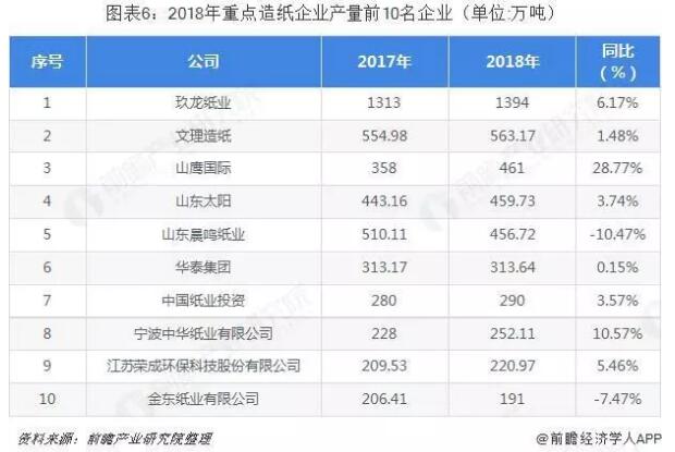 另外,從中國造紙協(xié)會(huì)公布的數(shù)據(jù)來看,中國重點(diǎn)造紙業(yè)企業(yè)中玖龍紙業(yè)產(chǎn)量最大,超過1300萬噸。