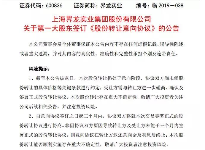 導(dǎo)語:董事長、副總經(jīng)理雙雙辭任后,界龍實(shí)業(yè)(600836)在經(jīng)營業(yè)績逐步下滑的背景下,也開始籌劃易主。