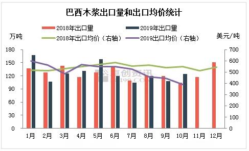 中國(guó)和歐洲是巴西紙漿出口主要目的地區(qū),2018年發(fā)往中國(guó)的出口量占總出口量的42%,歐洲地區(qū)占總出口量的32%,圖2可以看出兩大地區(qū)的紙漿庫存高位并沒有降低巴西紙漿出口量。巴西海關(guān)公布數(shù)據(jù)顯示,7-10月巴西紙漿出口量455萬噸,與去年同期基本持平,其中到中國(guó)的紙漿出口量195萬噸,較去年同期上升15%。可以看出到中國(guó)的出口量呈現(xiàn)增長(zhǎng)趨勢(shì),主要原因:一是中國(guó)紙漿市場(chǎng)景氣度好于歐洲市場(chǎng);二是中國(guó)紙漿下游市場(chǎng)體量較大,紙漿消耗能力好于全球其他地區(qū)。卓創(chuàng)分析,基于這兩個(gè)原因,未來中國(guó)將穩(wěn)固巴西紙漿第一大出口目的地地位。 降漿價(jià) 出口均價(jià)不斷下調(diào) 穩(wěn)出口伴隨的第三個(gè)操作就是降漿價(jià),從圖2可以看出2018年7月開始,巴西紙漿出口均價(jià)下降明顯,2019年10月降至392美元/噸,環(huán)比下降12%,同比下降28%。主要原因:一是下游采買熱情不高,漿廠去庫存壓力大,低價(jià)銷貨,集中部分貨物采取低價(jià)預(yù)售或到貨談價(jià)的情況;二是巴西紙漿生產(chǎn)成本較低,漿廠有利潤(rùn)空間支撐漿價(jià)下調(diào),三季度巴西各漿廠財(cái)報(bào)顯示紙漿行業(yè)盈利能力仍然強(qiáng)勁。 后期展望 供應(yīng):12月CENIBRA漿廠兩條線持有檢修計(jì)劃,共檢修12天。Suzano旗下漿廠前三季度共生產(chǎn)紙漿650萬噸,預(yù)計(jì)四季度產(chǎn)量250萬噸左右,最新的11月巴西紙漿出口量122萬噸,環(huán)比下降7%,同比上升4%,巴西紙漿供應(yīng)量穩(wěn)定。 庫存情況:四季度中國(guó)和歐洲紙漿港口庫存均呈下降趨勢(shì),但因?yàn)榍捌趲齑嫣帤v史高位,截至11月底庫存壓力仍存,暫不具備支撐漿價(jià)上漲條件。 需求情況:中國(guó)中大型紙廠直接采買外盤,消化一部分紙漿庫存。但隨著文化用紙傳統(tǒng)旺季結(jié)束、生活用紙市場(chǎng)持續(xù)低迷,漿市需求后勁趨弱,短期需求量難有明顯增量。 卓創(chuàng)分析,年末中國(guó)紙漿市場(chǎng)仍處供大于需階段,巴西紙漿供應(yīng)量穩(wěn)定,紙漿下游行業(yè)景氣度一般,部分中小紙廠春節(jié)停機(jī)時(shí)間或增加,紙漿消耗速度趨緩,預(yù)計(jì)巴西漿廠2020年上半年仍將采取主動(dòng)降產(chǎn)量操作,漿價(jià)維持低位震蕩。