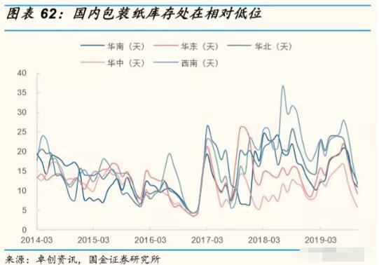 2)木漿造紙:目前來看,無論是國內漿價還是國際漿價都處在相對低位。但與廢紙相比木漿價格明顯更高。若采用木漿進行包裝紙制造,在激發木漿需求的同時,也將會導致成本增加促使原紙漲價。