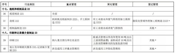 《固定污染源排污許可分類管理名錄(2019年版)》已經生態環境部部務會議審議通過,現予公布,自公布之日起施行。2017年7月28日原環境保護部發布的《固定污染源排污許可分類管理名錄(2017年版)》同時廢止。 生態環境部部長 李干杰 2019年12月20日 固定污染源排污許可分類管理名錄 (2019 年版) 第一條 為實施排污許可分類管理,根據《中華人民共和國環境保護法》等有關法律法規和《國務院辦公廳關于印發控制污染物排放許可制實施方案的通知》的相關規定,制定本名錄。 第二條 國家根據排放污染物的企業事業單位和其他生產經營者(以下簡稱排污單位)污染物產生量、排放量、對環境的影響程度等因素,實行排污許可重點管理、簡化管理和登記管理。 對污染物產生量、排放量或者對環境的影響程度較大的排污單位,實行排污許可重點管理;對污染物產生量、排放量和對環境的影響程度較小的排污單位,實行排污許可簡化管理。對污染物產生量、排放量和對環境的影響程度很小的排污單位,實行排污登記管理。 實行登記管理的排污單位,不需要申請取得排污許可證,應當在全國排污許可證管理信息平臺填報排污登記表,登記基本信息、污染物排放去向、執行的污染物排放標準以及采取的污染防治措施等信息。 第三條 本名錄依據《國民經濟行業分類》(GB/T4754-2017)劃分行業類別。 第四條 現有排污單位應當在生態環境部規定的實施時限內申請取得排污許可證或者填報排污登記表。新建排污單位應當在啟動生產設施或者發生實際排污之前申請取得排污許可證或者填報排污登記表。 第五條 同一排污單位在同一場所從事本名錄中兩個以上行業生產經營的,申請一張排污許可證。 第六條 屬于本名錄第1至107類行業的排污單位,按照本名錄第109至112類規定的鍋爐、工業爐窯、表面處理、水處理等通用工序實施重點管理或者簡化管理的,只需對其涉及的通用工序申請取得排污許可證,不需要對其他生產設施和相應的排放口等申請取得排污許可證。 第七條 屬于本名錄第108類行業的排污單位,涉及本名錄規定的通用工序重點管理、簡化管理或者登記管理的,應當對其涉及的本名錄第109至112類規定的鍋爐、工業爐窯、表面處理、水處理等通用工序申請領取排污許可證或者填報排污登記表;有下列情形之一的,還應當對其生產設施和相應的排放口等申請取得重點管理排污許可證: (一)被列入重點排污單位名錄的; (二)二氧化硫或者氮氧化物年排放量大于250噸的; (三)煙粉塵年排放量大于500噸的; (四)化學需氧量年排放量大于30噸,或者總氮年排放量大于10噸,或者總磷年排放量大于0.5噸的; (五)氨氮、石油類和揮發酚合計年排放量大于30噸的; (六)其他單項有毒有害大氣、水污染物污染當量數大于3000的。污染當量數按照《中華人民共和國環境保護稅法》的規定計算。 第八條 本名錄未作規定的排污單位,確需納入排污許可管理的,其排污許可管理類別由省級生態環境主管部門提出建議,報生態環境部確定。 第九條 本名錄由生態環境部負責解釋,并適時修訂。 第十條 本名錄自發布之日起施行。《固定污染源排污許可分類管理名錄(2017年版)》同時廢止。 與造紙印刷包裝相關: