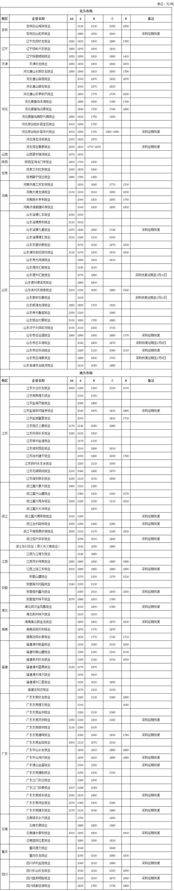 導語:《國務院辦公廳關于延長2020年春節假期的通知》將法定節假日已延長至2月2日,但湖南、廣東、上海、重慶、江蘇、浙江、河南、河北、山東、安徽、貴州、云南、福建、遼寧、內蒙古等19省份區域內企業復工時間不得早于2月9日24時,湖北不得早于2月13日24時。目前多數紙廠依照政令安排復工計劃,春節后紙廠生產恢復不確定性明顯增加,那么廢紙市場表現及影響如何? 春節過后,國內廢紙市場恢復受限。首先多地打包站復工延期,其次多數紙廠采購延后恢復。由此市場交投延續冷淡,廢舊黃板紙到廠價穩定運行。 紙廠廢紙采購工作延后恢復 節后多數中小紙廠發布延期恢復采購廢紙的通知,且恢復時間待定。以東莞市場為例,目前僅東莞玖龍、廣東理文等少數紙廠恢復采購廢紙。多數紙廠延期恢復采購,且恢復時間暫不確定。目前全國范圍內超大型紙廠基本恢復采購廢紙。