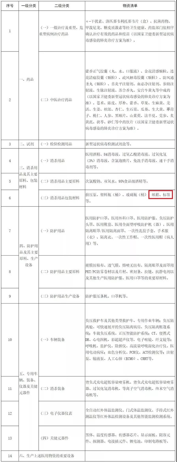 作為保障疫情防控物資生產(chǎn)的重要配套物資“紙箱、標(biāo)簽”也被列入清單中,及時(shí)解決了疫情用紙箱的生產(chǎn)、運(yùn)輸?shù)幕謴?fù)和開展工作。