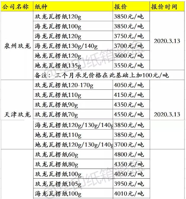 3、龍頭紙廠玖龍、理文的包裝紙參考報價