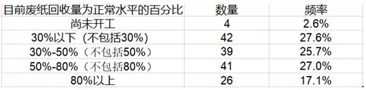 造紙廠停工情況 152個樣本中,有61個打包站表示,其所供應的造紙廠有年后未開工/開工后又停工的現象。