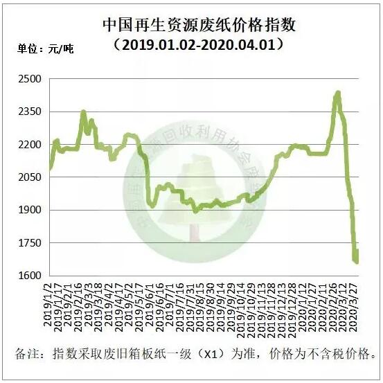 受疫情及下游造紙行業(yè)調(diào)整影響,2020年第一季度國(guó)內(nèi)回收紙行業(yè)收到較大的沖擊,對(duì)造紙行業(yè)產(chǎn)量及包裝紙價(jià)格的影響,也比較劇烈。 一季度回收紙總量下降35%,營(yíng)收下跌37% 根據(jù)中國(guó)再生資源回收利用協(xié)會(huì)廢紙分會(huì)調(diào)查顯示: 2020年一季度國(guó)內(nèi)回收紙行業(yè)回收總量約為800萬(wàn)噸,同比下降約35%;營(yíng)業(yè)收入約為172億元,同比下降約37%。 企業(yè)數(shù)量約減少30%,規(guī)模企業(yè)復(fù)工率達(dá)到90%,小微企業(yè)退出較多,從業(yè)人員同比減少40%。 一季度回收紙平均價(jià)格為2156元/噸,同比下降2.3%。 3月受造紙行業(yè)價(jià)格調(diào)整影響,回收紙價(jià)格20天內(nèi)從2450元/噸跌至1650元/噸,跌幅超過32%。