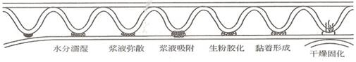 漿糊的貼合過程分四個步驟:涂布(即上膠)--潤濕(含滲透)--糊化干燥,四個物理和化學過程。