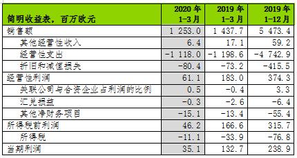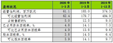 2020年1-3月(與2019年1-3月相比) ·銷售額為12.53億歐元(去年同期:14.38億歐元)。 ·經營性利潤為6100萬歐元(去年同期:1.83億歐元)。可比經營性利潤為6200萬歐元(去年同期:1.80億歐元)。 ·稅前利潤為4600萬歐元(去年同期:1.67億歐元)。可比稅前利潤為4800萬歐元(去年同期:1.63億歐元)。 ·可比已占用資本回報率為4.9%(去年同期:13.8%)。 ·經營現金流為4900萬歐元(去年同期:4100萬歐元)。 2020年第一季度主要事件 ·針葉漿的平均美元市場價格保持穩定,闊葉漿的平均美元市場價格與上一季度相比略有下降。不過,兩種漿的價格均明顯低于去年同期。 ·芬蘭國內罷工波及芬林集團的所有業務領域,因此對經營業績產生了負面影響。 ·紙板的交付量高于去年同期。在歐洲市場,白牛卡的平均價格略低于去年同期,折疊紙板的平均價格未變。 ·新冠肺炎疫情增加了對生活用紙、折疊紙板和白牛卡的需求。 ·芬林芬寶決定在芬蘭勞馬(Rauma)建造全球最現代化的鋸木廠,投資額約為2億歐元。 ·芬蘭凱米(Kemi)生物制品廠的前期工程正繼續進行中。 拉普蘭經濟發展、運輸與環境中心(ELY中心)完成對項目的環境影響評估,在環境影響評估(EIA)報告中得出了合理結論。 集團最早將于2020年秋做出投資決定。 ·芬林紙板獲批在瑞典胡蘇姆(Husum)工廠啟動建造新型回收鍋爐項目。 在取得環境許可證后,公司將做出最終投資決定。 在報告期后發生的事件 4月下旬,芬林芬寶就勞馬新鋸木廠和凱米生物制品廠的主要設備購買事宜達成協議。這些協議的總價值約為5億歐元,其中70%的設備將購自芬蘭國內。 新冠肺炎的影響和針對性措施 芬林集團遵循并遵守政府發布的新冠肺炎疫情指南。最重要的預防措施是全體人員保持一定的社交距離。為了防備疫情的進一步蔓延,芬林集團的各職能部門均已預先制定了預防措施,以確保人員安全和業務連續性。在新冠肺炎疫情期間,集團的資源供給始終保持正常。除了芬林梅沙木業在英國的子公司、以及俄羅斯Metsä Svir鋸木廠和俄羅斯木材供應業務(僅運行部分產能)外,其他地區的生產和交貨均保持正常。 2020年4-6月績效預測 2020年第二季度,芬林集團的可比經營性績效預計將比2020年第一季度有所改善。 芬林集團總裁兼首席執行官何亦凱(Ilkka Hämälä)表示: “如我們所預期,芬林集團在2020年第一季度的業績表現仍弱于上一季度。漫長的罷工波及我們所有業務領域,削弱了我們的贏利能力。新冠肺炎疫情已形成了全球大流行,但除了以歐洲為主的鋸材市場和芬林梅沙木業在英國的木材加工業務之外,疫情未對我們第一季度的產品需求造成負面影響。 年初以來,木漿市場的表現略顯良好。疫情對不同的客戶群產生了不同的影響,生活用紙市場的木漿需求出現增長,而印刷用紙市場的木漿需求則有所下降。全球各地的商品漿生產商紛紛宣布削減產量,這歸因于政府指令和疫情帶來的其他影響。2月芬蘭罷工結束后,芬林集團的木漿廠已實現滿負荷運轉。 疫情的大流行增加了對折疊紙板和牛卡產品的整體需求。在折疊紙板方面,市場需求特別集中在食品包裝上。 市場對生活用紙的需求比較旺盛,特別是個人消費品和清潔手巾。我們調整了產品組合,滿足不斷增長的市場需求,從而增加了產量。 芬林集團的投資項目正在按照計劃內的時間表進行,但疫情的潛在爆發將有可能會對項目造成自然的影響。在本季度,我們決定在勞馬投資建設新一代鋸木廠;胡蘇姆木漿廠的現代化改造正繼續進行第一階段的建設工作;對凱米生物制品廠的環境影響評估得出了合理結論,我們將基于報告結論來進一步發展工廠的技術概念,并根據環境影響評估報告來更新環保許可申請。 就資產負債表、業務結構和組織架構而言,芬林集團擁有強大的實力。我們已經為應對由新冠肺炎大流行引起的全球重大經濟危機做好了準備。在這種情況下,我們的首要任務是確保員工和合作伙伴的安全,防止疫情的進一步蔓延,同時確保我們的業務連續性。芬林集團將芬蘭木材加工成產品,每年可為芬蘭帶來約40億歐元出口收入。在疫情后的經濟復蘇期,這些出口行業的現金流將在國民經濟中起到越來越重要的作用。” 關鍵數據