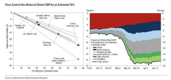 針對(duì)新冠肺炎的阻止措施已使全球GDP減少了16%。